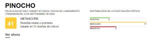 Las palabras que más se repiten entre los usuarios del sitio es que fue por lejos: "el remake más innecesario". Así la crítica a Pinocho barre con la película y califica a esta como la peor realizada por Disney hasta la fecha.