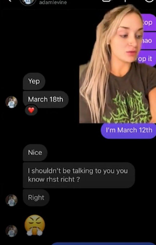 Una de ellas es una comediante llamada Maryka. Quien publicó una serie de pantallazos donde aparecen varios de estos textos donde el artista dice: “Distráete teniendo sexo conmigo” o “Soy estúpido”. Incluso, otra mujer llamada Alyson Rosef mostró presuntas conversaciones con Adam Levine donde le escribió lo siguiente.