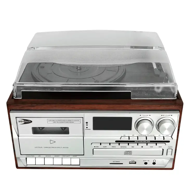 Este pack incluye además una tornamesa clásica con radio am/fm, CD, grabador de cassette y ranura USB/SD y BT