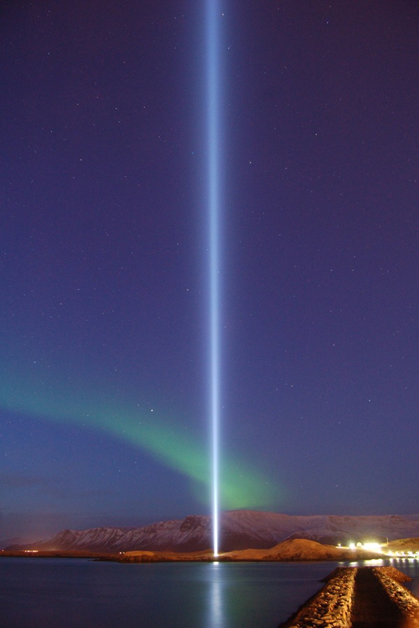 La Torre "Imagina la Paz" está ubicada en Islandia, lugar que frecuentemente es catalogado como la ciudad más pacífica del mundo. El faro se enciende todos los años, en la fecha del natalicio y el aniversario del fallecimiento de John Lennon.