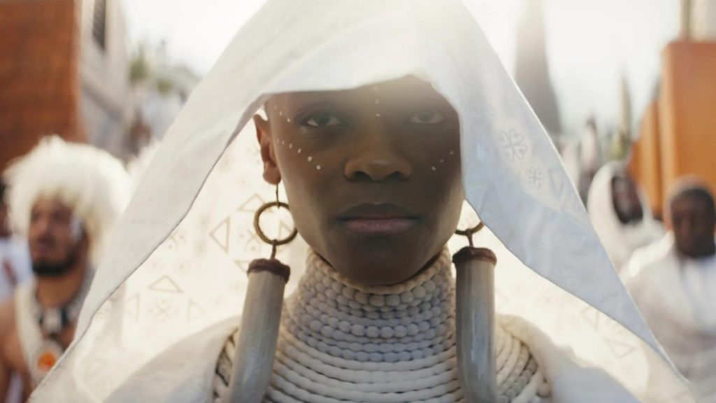 En este nuevo avance todo apunta a que la persona bajo el traje es Shuri, la hermana menor de T’Challa. La actriz que interpreta Shuri, Letitia Wright, ha expresado que la película es “una hermosa contribución al legado de Chadwick”.