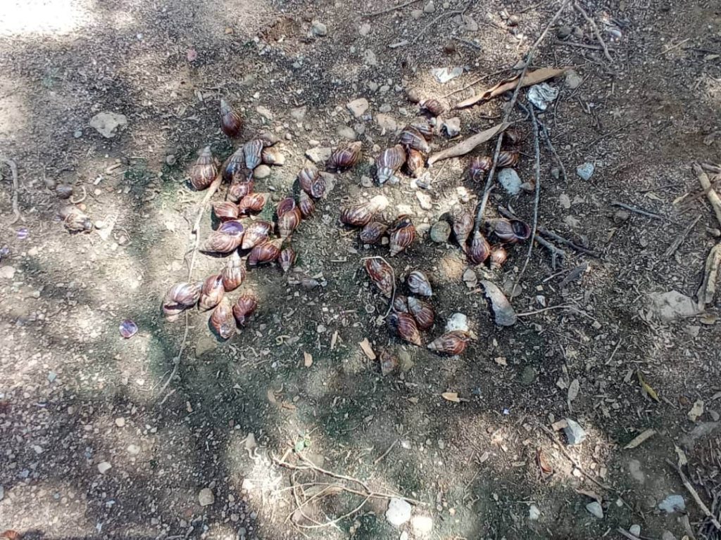 “El caracol se beneficia de la lluvia, en sequía se entierran y cuando llueve vuelven a salir a reproducirse. Este animal invasor afecta a toda la biodiversidad, animales silvestres, mascotas y seres humanos. Es muy voraz comiendo plantaciones”. Detalló el representante de Mapache.