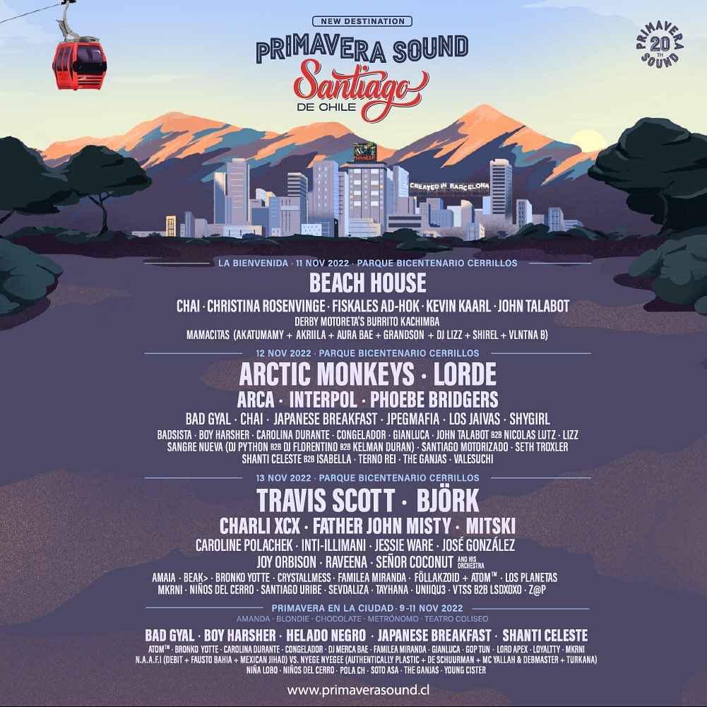 Si eres fanático de Arctic Monkeys, Lorde, Travis Scott o Björk, seguramente ya tienes tu entrada para asistir a la próxima edición del Primavera Sound. El festival se realizará en el Parque Bicentenario de Cerrillos el día 11, 12 y 13 de noviembre, pero antes de que todo comience, hay cosas por hacer.