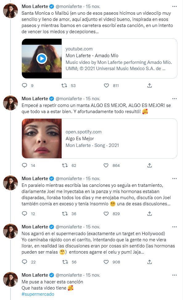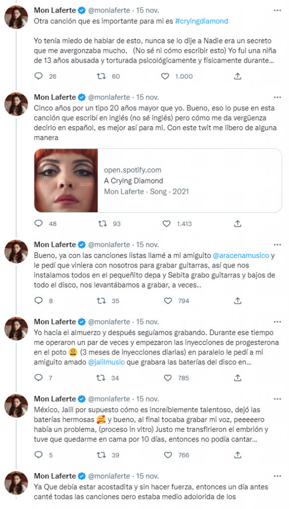 Lee a continuación el hilo de Twitter completo que publicó la cantautora: