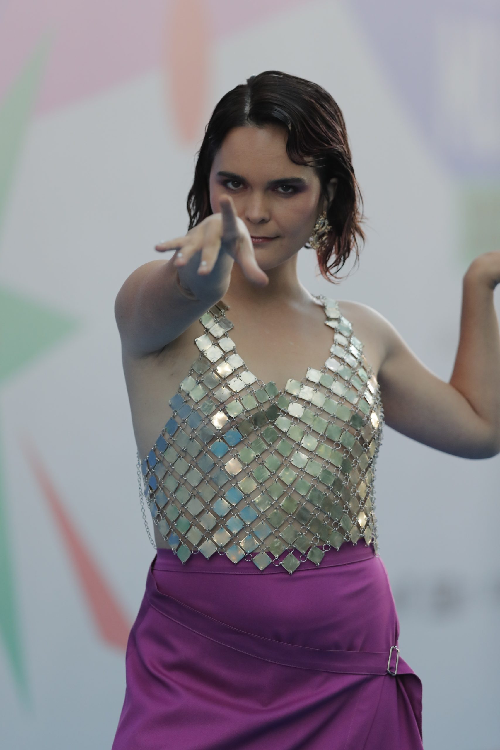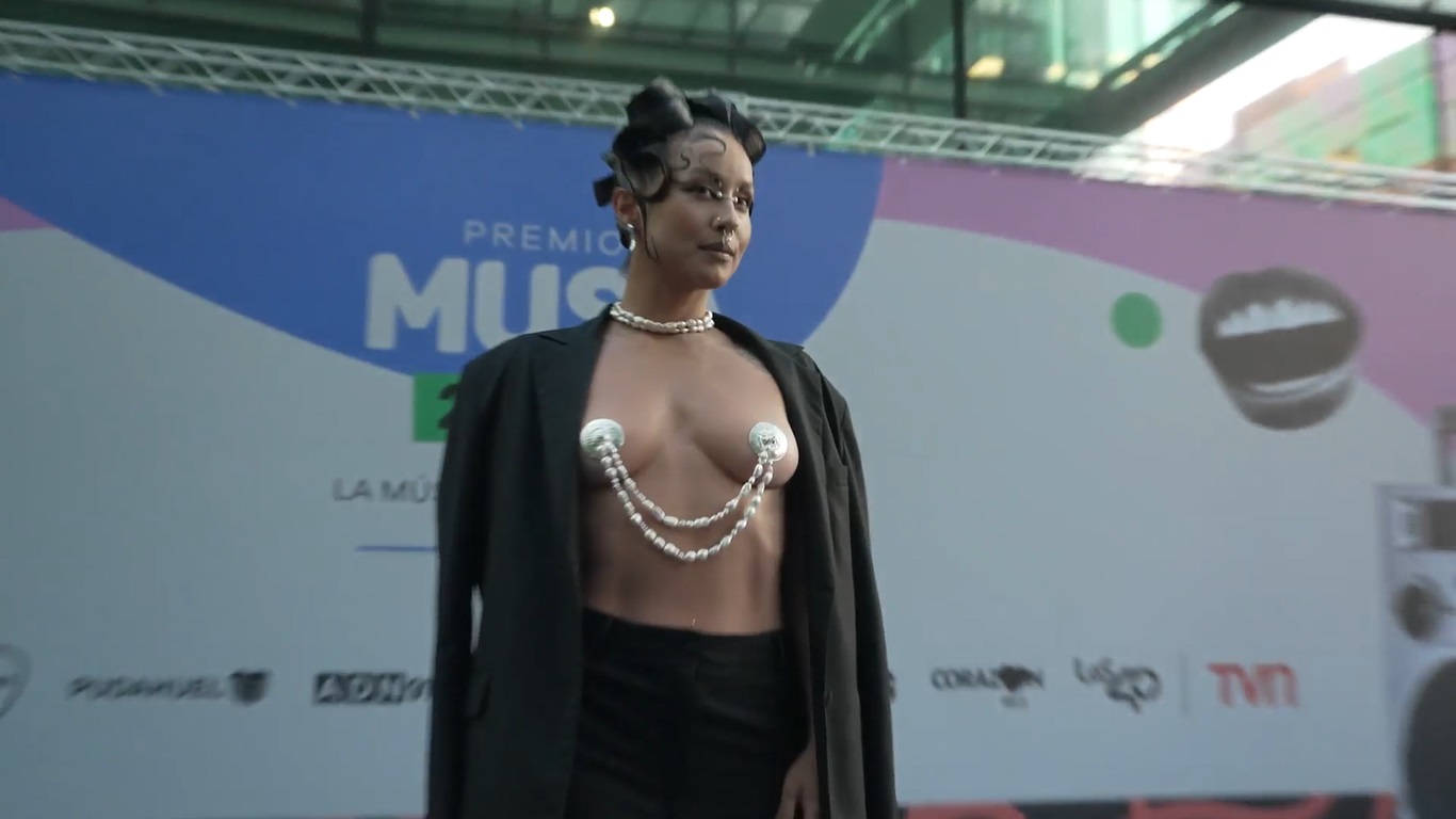 Camila Moreno, nominada a Mejor Video Musical por Rey, también se lució en la alfombra roja. Así, jugó frente a la cámara mientras pasaba por la previa a los Premios MUSA 2022.