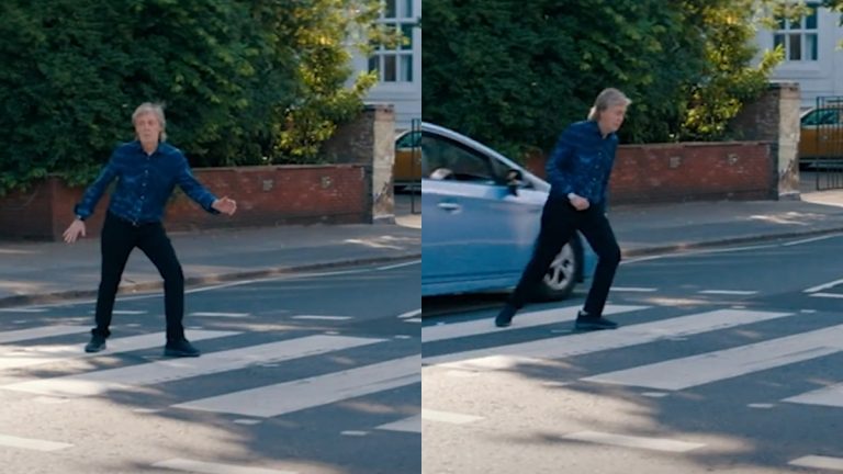 In this clip from @MaryAMcCartney’s new documentary, a car narrowly misses Paul as he recreates the ‘Abbey Road’ album cover. #IfTheseWallsCouldSing is now streaming worldwide on @DisneyPlus | https://t.co/6v6YyJjJjb pic.twitter.com/qUsfi2AzOW