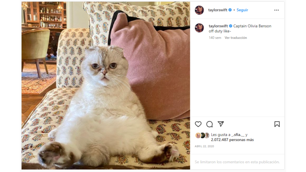 Para los resultados analizaron las cuentas de Instagram con mayor numero de me gusta, participación y seguidores, y con ello estimaron cuánto podría ganar cada una de estas mascotas por publicación. Fue ahí donde Olivia Benson, uno de los gatos de la estrella pop Taylor Swift alcanzó el tercer lugar en los animales más ricos del mundo.