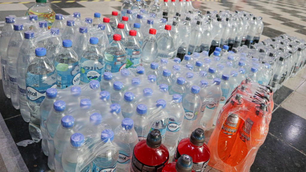 Están recibiendo Bebidas isotónicas, Agua embotellada con y sin gas, barras de chocolates y cereales, y alimentos envasados (frutas, legumbres, mariscos y pescados.