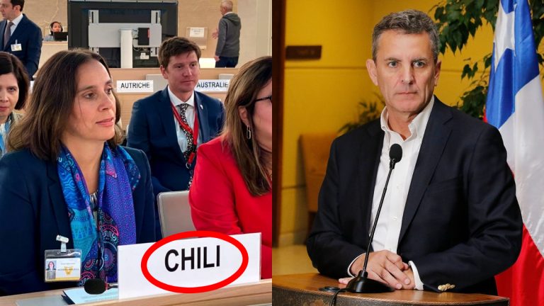 La ministra de Relaciones Exteriores, Antonia Urrejola, participó en el Consejo de Derechos Humanos de la ONU, pero lo que le molestó al parlamentario del Partido Republicano es un letrero que decía “Chili”.