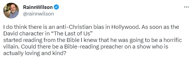 Según acusó, esto es una tendencia que se ve en este tipo de serie y manda un mensaje en contra del cristianismo. "Sí creo que hay una mirada anti-cristiana en Hollywood. Tan pronto como apareció el personaje de David, sabía que sería un horrible villano", comenzó Rainn Wilson.