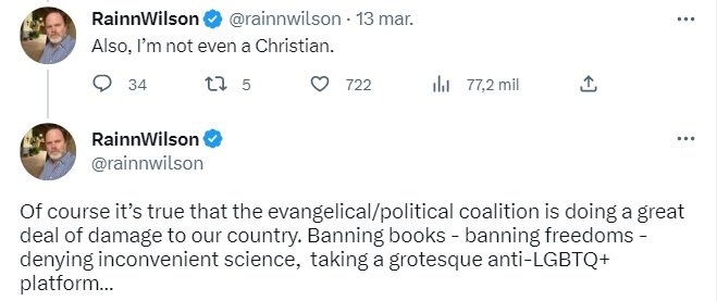 "La mayoría de los cristianos que conozco son buenos, amorosos y buscan hacer del mundo un mejor lugar. También deberían ser honrados en los medios", continuó el actor de The Office, afirmando que él ni siquiera se identifica como alguien cristiano.