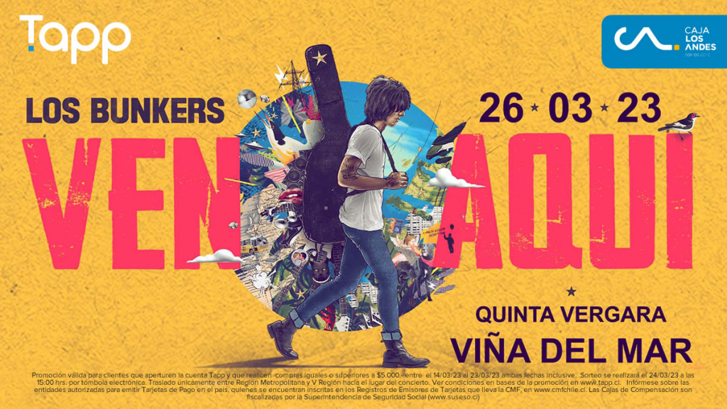 Ya lo sabes, ¡Es tu oportunidad de conocer a Los Bunkers, utiliza tu tarjeta Tapp de Caja Los Andes y participa por un Meet & Greet!