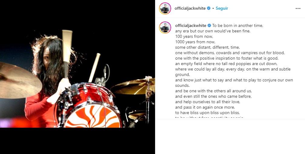 "Nacer en otro tiempo, cualquier otra era, habría estado bien. 100 años después, 1000 años después, en una época distante y diferente. Una sin demonios, cobardes y vampiros buscando sangre", escribió Jack White en su sentida publicación a la baterista.