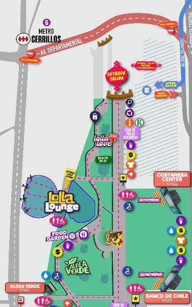 Asimismo, el mapa muestra el sendero accesible que tendrá esta nueva versión de Lollapalooza Chile 2023. Cabe recordar que este va enfocado a personas con movilidad reducida, por lo que se pide que todos respeten este sendero para hacer el traslado lo más sencillo para todos los asistentes.