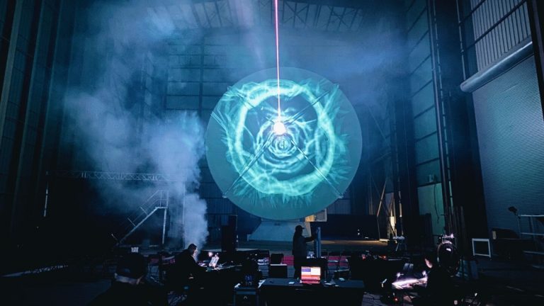Se proyecta la misma señal pero con la distorsión de perspectiva y de deformación del plato para que se vean iguales. “La instalación de sonido inmersiva de 12.4 parlantes, formato bastante inédito en relación al tradicional stereo, está a cargo de Omni Soundlab y StecherLab, mientras que la producción y mezcla está a cargo del destacado productor musical Christopher Manhey, quien implementó un formato híbrido con las herramientas Dolby Atmos y Spacemap Go de Meyer Sound.
