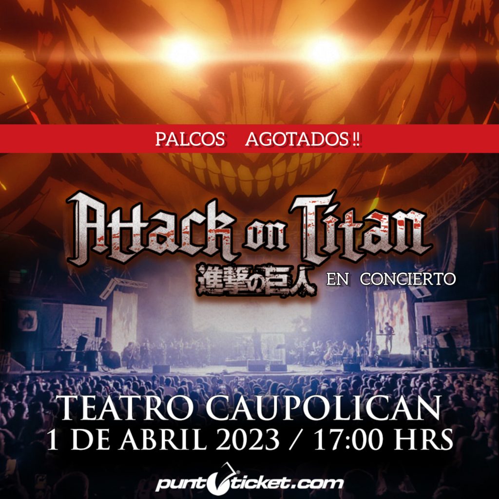 ¿Cuándo? El próximo 1° de abril se llevará a cabo a las 17:00 en el Teatro Caupolicán un concierto de Shingeki No Kyojin a cargo de de la Orquesta Filarmónica Pro-Arte. Pese a que los palcos B, C, D y E se encuentran agotados, todavía quedan entradas generales disponibles a través del sistema de Punto Ticket desde los $25.300.