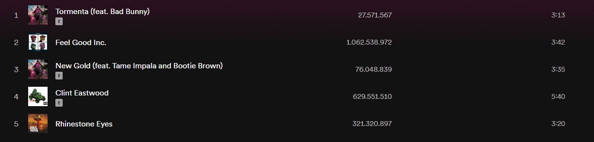 Así lo demuestran la cantidad de reproducciones que ha recibido el tema desde su estreno. De hecho, ya se convirtió en la canción más escuchada de Gorillaz del momento, superando a uno de sus más grandes clásicos musicales.