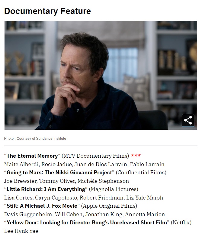 Se trata dLa Memoria Infinita, cinta que Variety nombra como la favorita en la categoría de Mejor Documental. El filme de Maite Alberdi, misma directora de El Agente Topose ha llevado aclamación y ovaciones de pie tras su paso por Sundance y Berlinale.