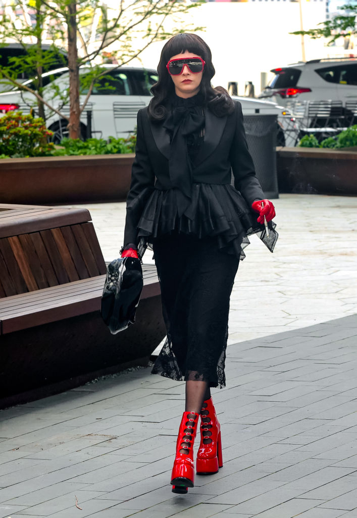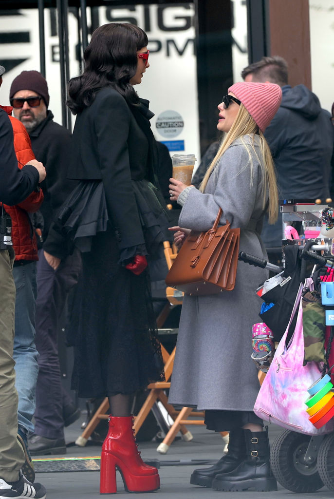 Además, aparece con unas grandes gafas oscuras y unas botas rojas que rápidamente llamaron la atención. Dentro del set, se le vio grabando escenas con Emma Roberts (Scream Queens) quien regresa a American Horror Story para esta nueva temporada.