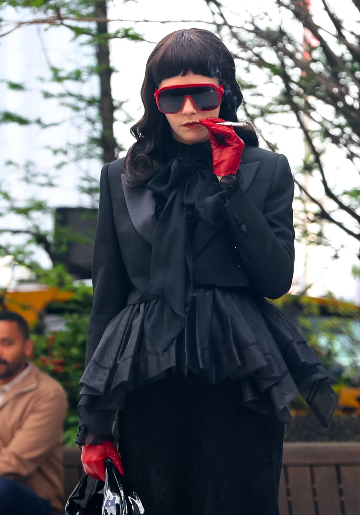 En estas, se puede ver a la estrella de Suicide Squad con un look completamente distinto. Para su personaje, se despide de su icónica cabellera rubia para un peinado más oscuro, a juego con su dramático vestido gótico.