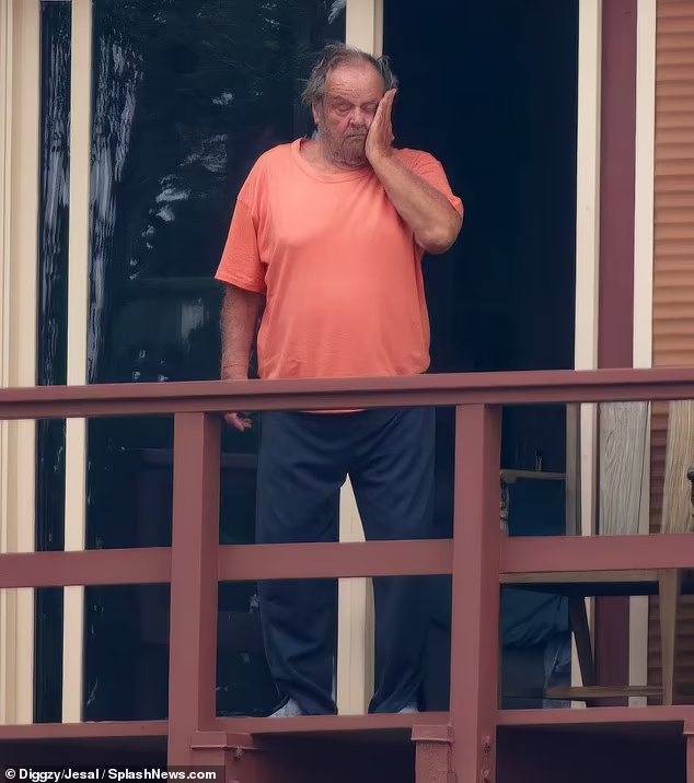 Publicadas por el Daily Mail la semana pasada, las nuevas imágenes muestran a Nicholson de pie en su balcón con una camiseta naranja suelta y pantalones azul marino. En una de las fotos, se frota un lado de la cara y su cabello parece desordenado.