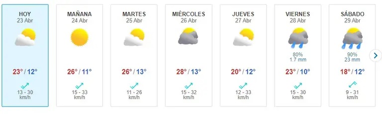 Tal como reportó la Dirección Meteorológica de Chile, las bajas temperaturas continuarán esta semana en la capital del país. Especialmente para los últimos días se abril, con máximas de solo 22° el jueves 27 de abril y solo 20° el viernes 28.