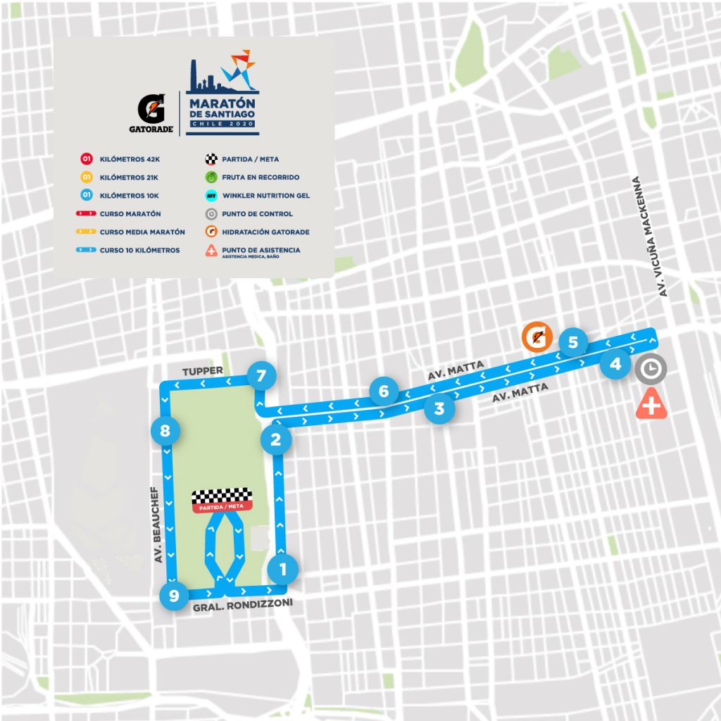 Según señalaron, los 10K tendrán su lugar de partida y meta en la elipse del Parque O’Higgins. El inicio de esta carrera será a las 10:00 horas y su trazado se realizará principalmente por Avenida Matta.