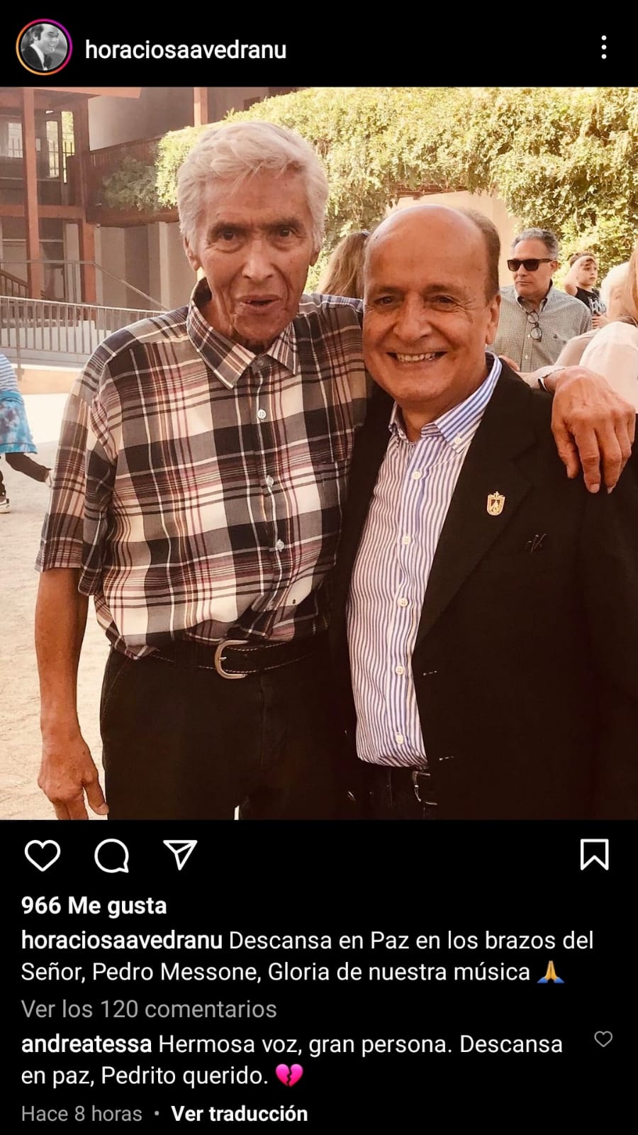 “Descansa en Paz en los brazos del Señor, Pedro Messone, Gloria de nuestra música”, comentó Saavedra en su post.
