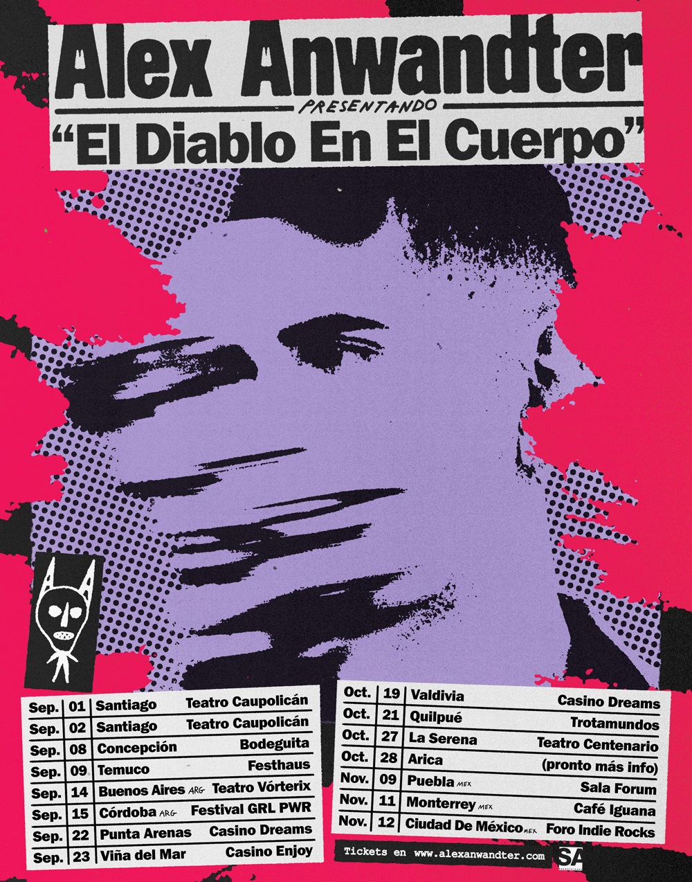 Este 1 y 2 de septiembre, Alex Anwandter comenzará su gira promocional de El Diablo en el Cuerpo que lo llevará a distintas ciudades de Chile. El cantante dará dos shows en el Teatro Caupolicán antes de viajar a regiones y presentarse en Argentina y México.