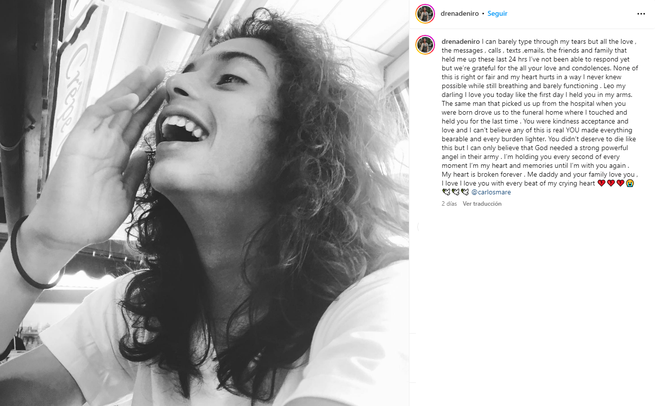 "No merecías morir así, pero solo puedo imaginar que Dios necesitaba a un poderoso y fuerte ángel en su ejercito", escribió la madre de Leandro De Niro en su desgarrador post. Además, también compartió la declaración oficial de Robert De Niro.