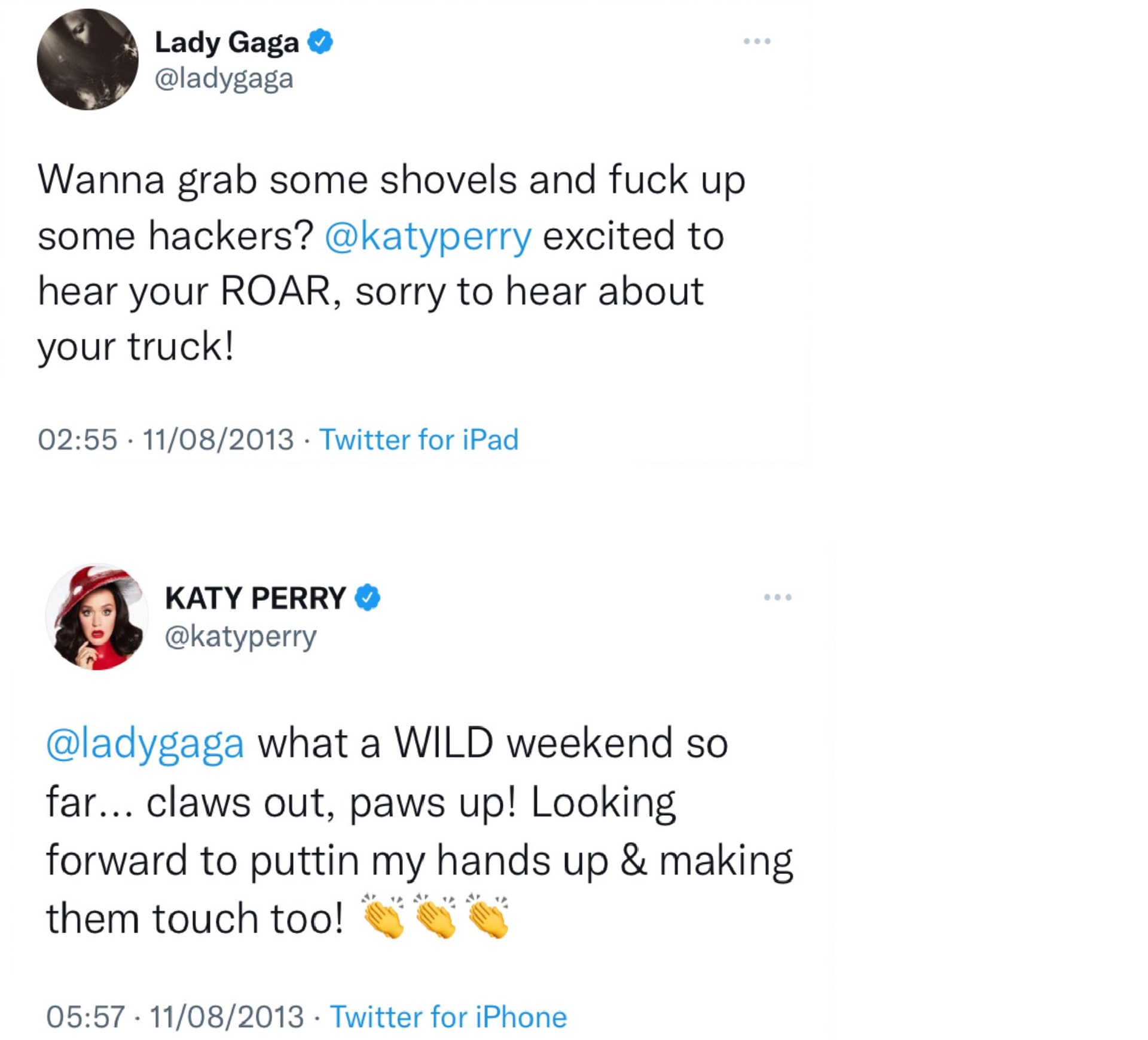 Para comienzos de los 2010s, Lady Gaga y Katy Perry ya se habían establecido como dos de las artistas pop más importantes de su generación. Gaga no dejaba de causar impacto con sus look y controversias, mientras que sus discos The Fame Monster y Born This Way vendían millones en el mundo.