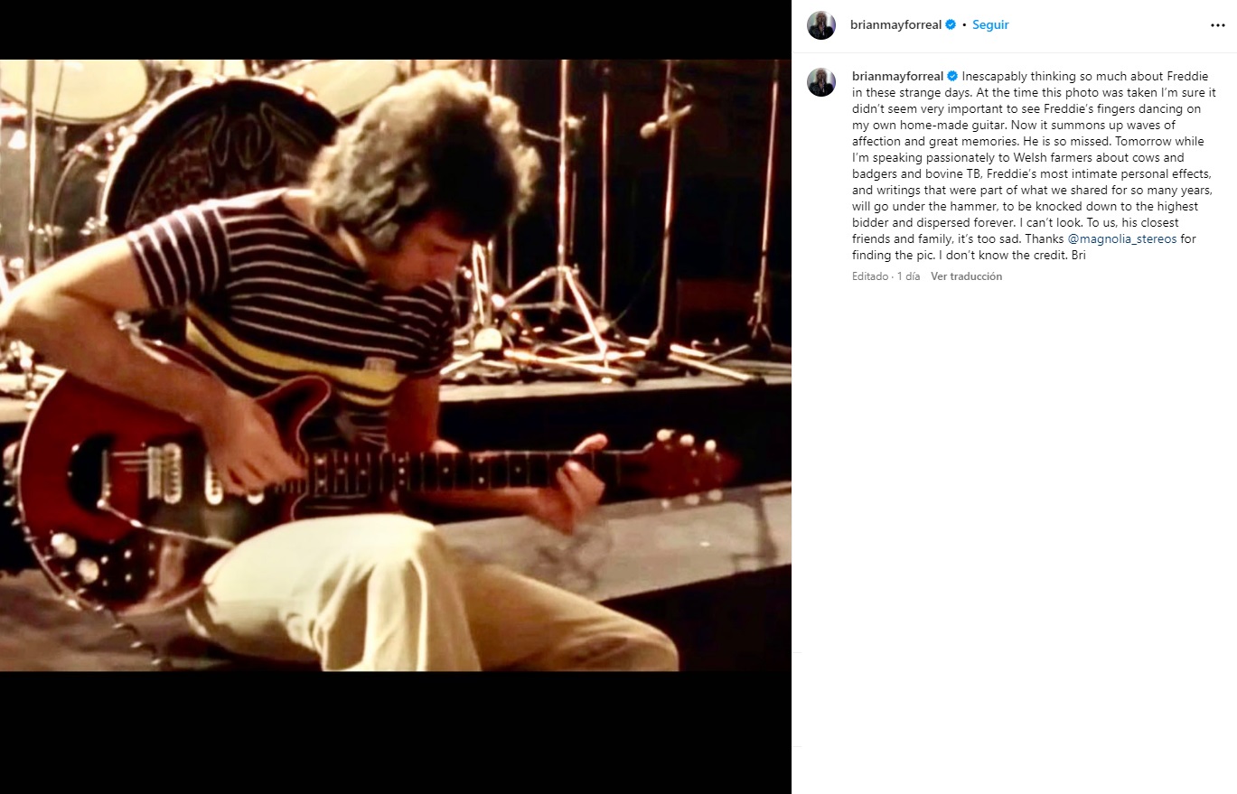 "Mañana.. los artículos más íntimos y personales de Freddie, escritos que fueron parte de algo que compartimos por muchos años, pasaran por el martillo", continuó Brian May, dejando en claro que no aprueba la subasta sobre los objetos de Freddie Mercury.