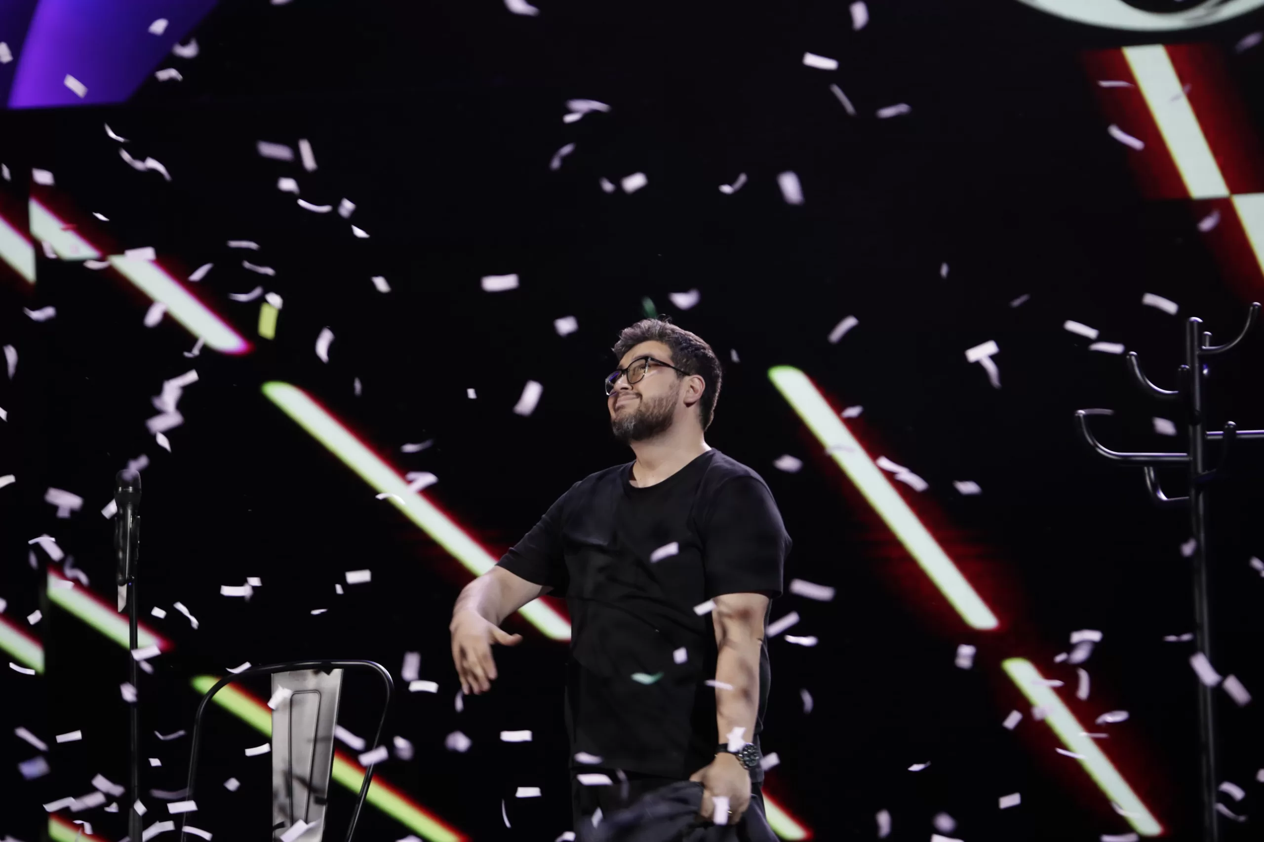 Luego de que Maná tocara sus últimos acordes en "Rayando el Sol", fue el turno del joven humorista. Quien debutaba en lo que sería una jornada gloriosa.