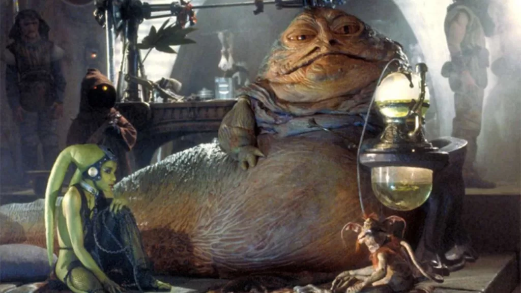 En cuanto a esta última aseveración, existe uno muy conocido que fue clave en la primera trilogía de los años 70' y 80'. Hablamos de Jabba el Hutt; un tirano que pasó gran parte del tiempo en la pantalla grande pidiendo el cuerpo de Han Solo, para tenerlo en su colección. Pues el encarnado por Harrison Ford le debía mucho dinero.