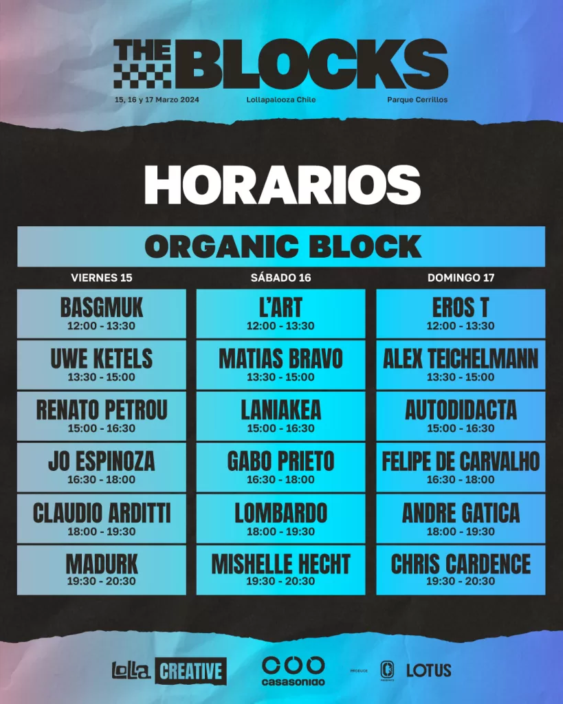 La música electrónica y urbana, con sus diversas tribus y expresiones, se tomarán "The Blocks". Con espacios de “Urban Block”, “Organic Block” y el “Techno House Block”.
