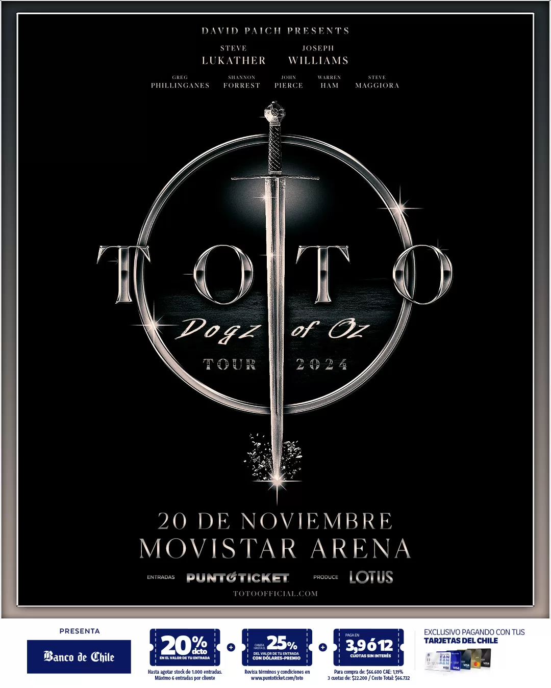 Toto vuelve a los escenarios chilenos luego de 17 años de distancia. La banda norteamericana con casi 50 años de trayectoria sorprendió a sus fanáticos con esta fecha en una de las ciudades donde más se les escucha.