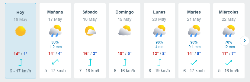 En concreto, el sitio señala que el lunes comenzarán las lluvias con 4 mm de lluvias en Santiago desde la tarde. Luego se espera que el martes 21, día feriado, durante todo el día caerán cerca de 9 mm.