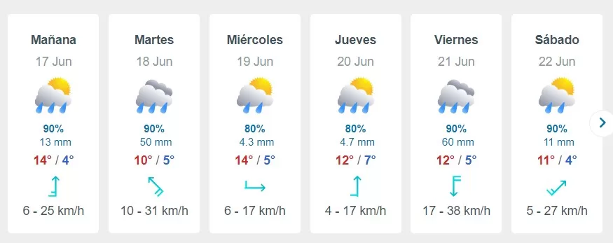 En el caso de este segundo sistema frontal, la lluvia será más intensa, con cerca de 60 - 70 milímetros entre el viernes y el sábado. Mira el detalle del pronóstico a continuación: