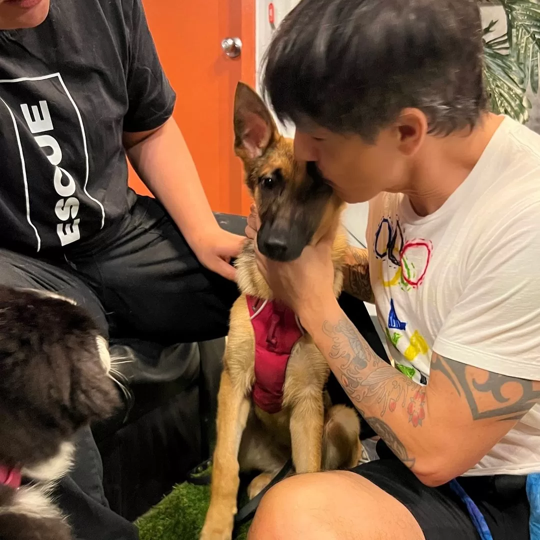 Allí, los miembros del grupo pasaron el rato jugando con los canes y decidieron subir a su página de Instagram fotos de ellos haciendo un llamado para que los adopten.