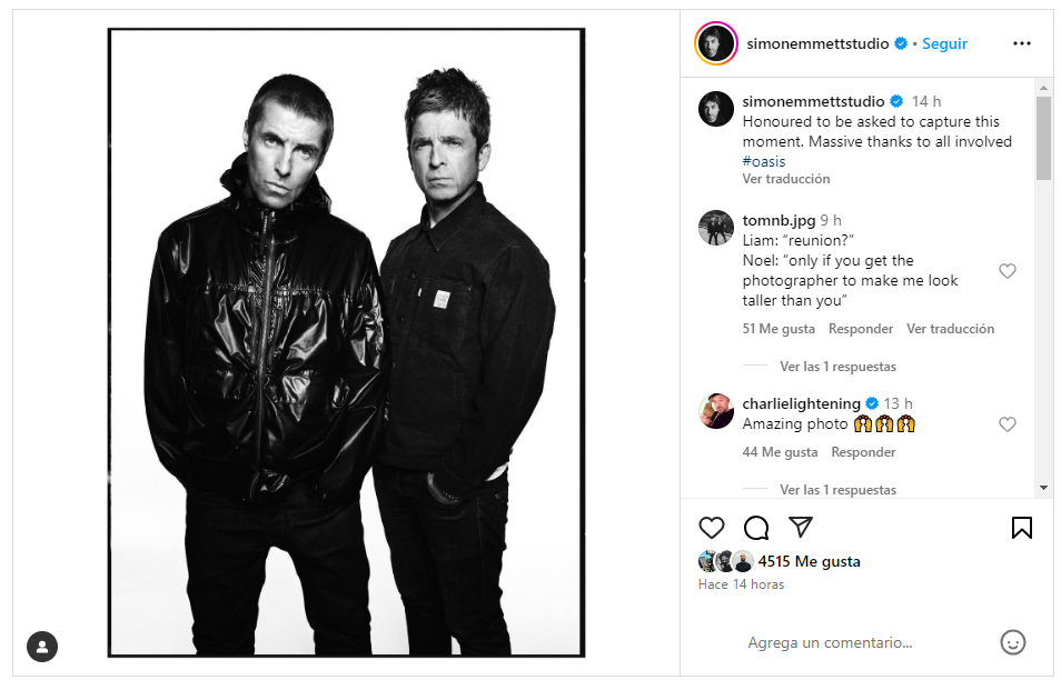 En una publicación en Instagram, el fotógrafo Emmett dijo: “Es un honor que me hayan pedido capturar este momento. Muchas gracias a todos los involucrados #oasis”.