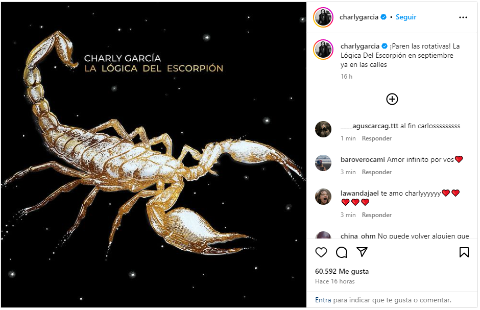 Hicieron falta unas pocas palabras de Charly para desatar la locura, y los comentarios de sus pares no demoraron. Fito Páez comentó en X: Vuelve Charly con todo! Que alegría volver a vivir, a las melodías, a la audacia armónica y al divertimento musical!. La lógica del escorpión es un gran manifiesto de estos días! Salud Charly! @garciasaynomore Y van… Te amo