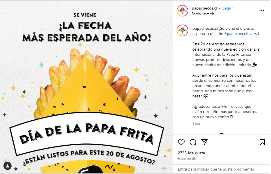 Hasta el momento no han anunciado ofertas oficialmente, pero en un post de Instagram informan que sí o sí celebrarán el Día de las Papas Fritas como corresponde, con promociones, descuentos y un cono edición limitada.
