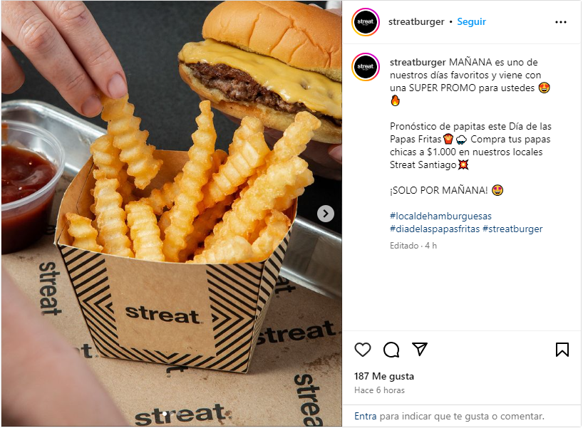 Streat Burguer también anunció una promoción solo por el día, 20 de agosto.