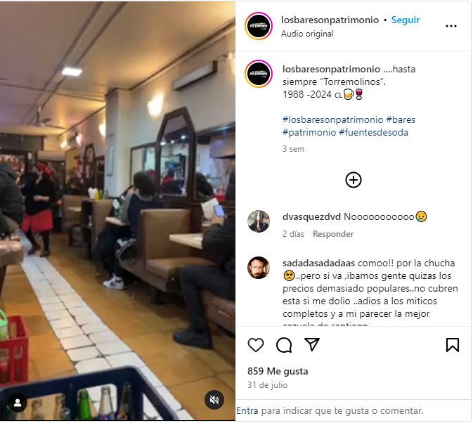 "Torremolinos es un símbolo del Barrio Lastarria, es un símbolo de las clásicas schoperías y es un punto neurálgico también de muchos acontecimientos deportivos, culturales, sociales, estaba muy cerca de la Plaza Italia y también fue testigo de manifestaciones de todo tipo", concluyó Salas.