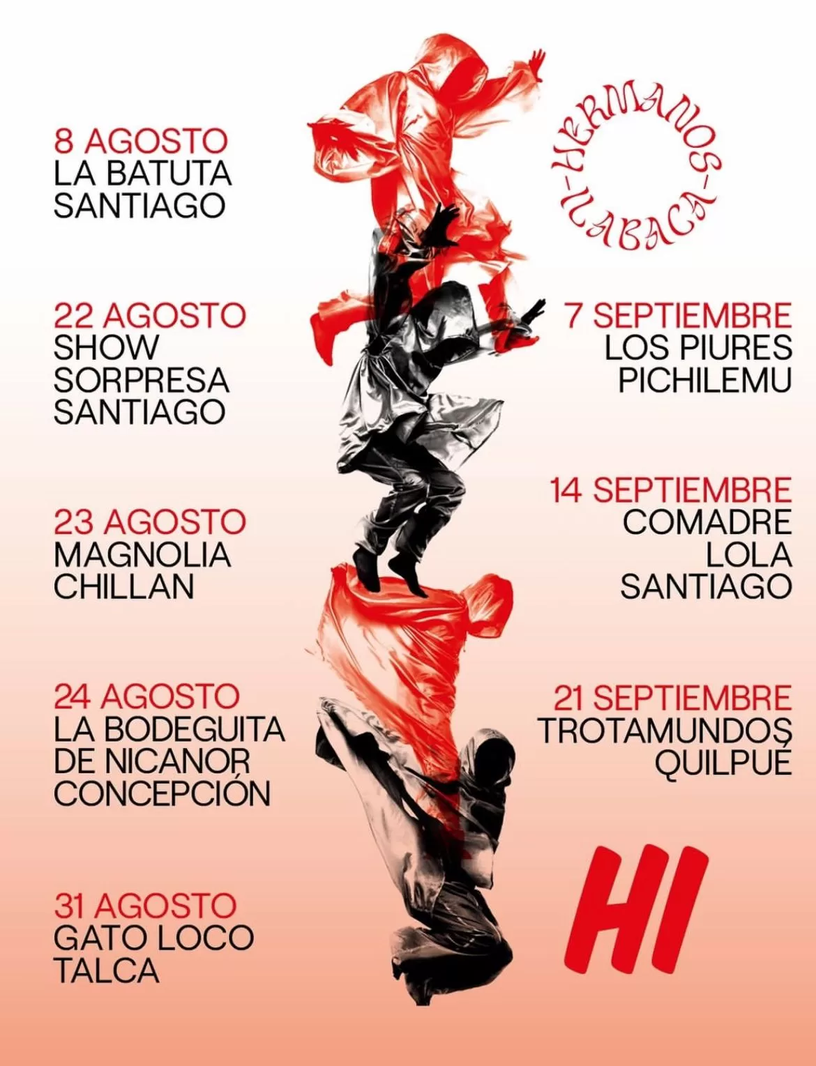 Al siguiente día, tocarán en el bar Magnolia, ubicado en Chillán. Las entradas están disponibles en Portaldisc. El 24 de agosto se desplazan al sur para el show de La Bodeguita de Nicanor en Concepción. El 31 de agosto, la locación es Gato Loco, ubicado en Chillán. Los tickets los encuentras en Portaldisc.