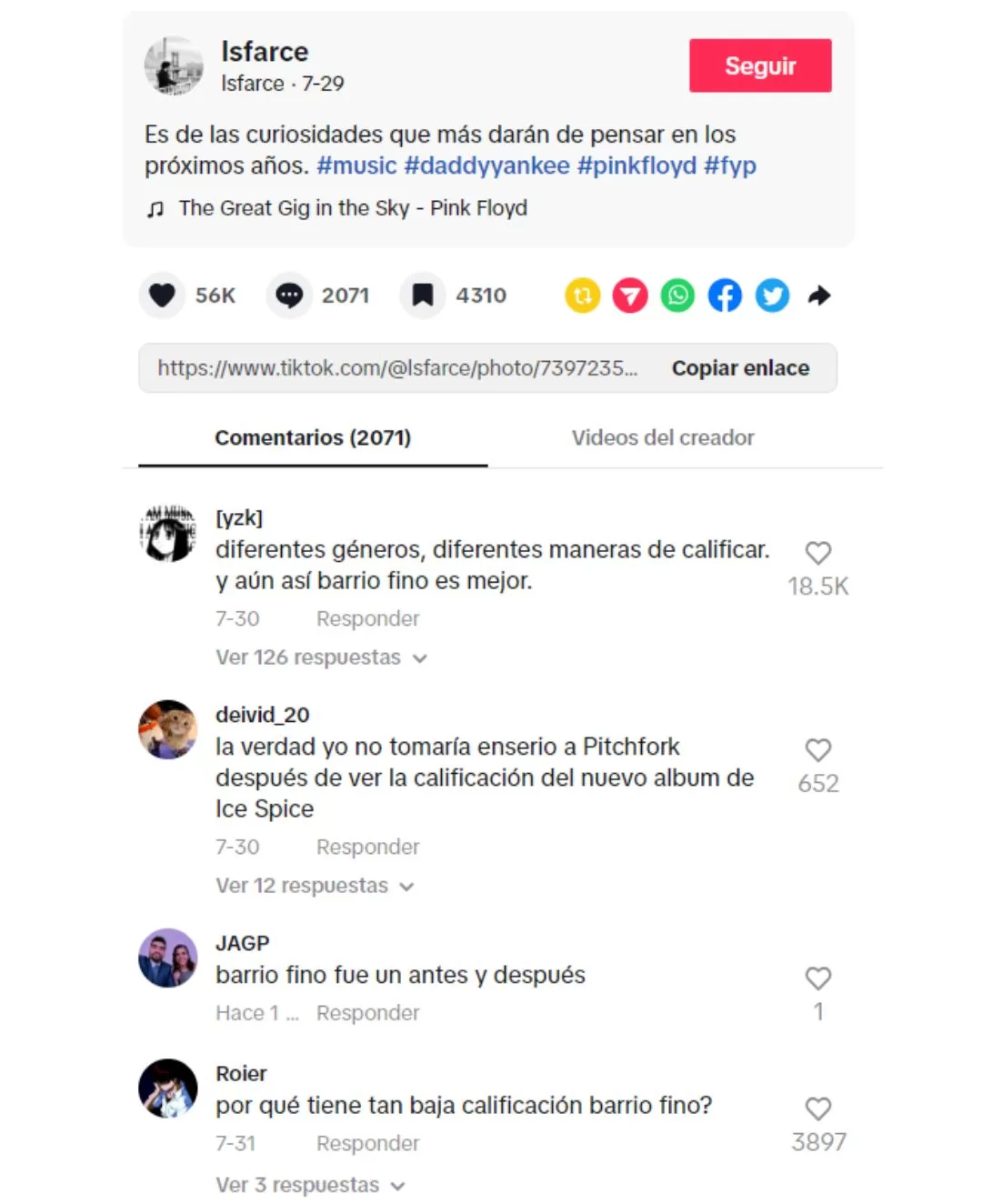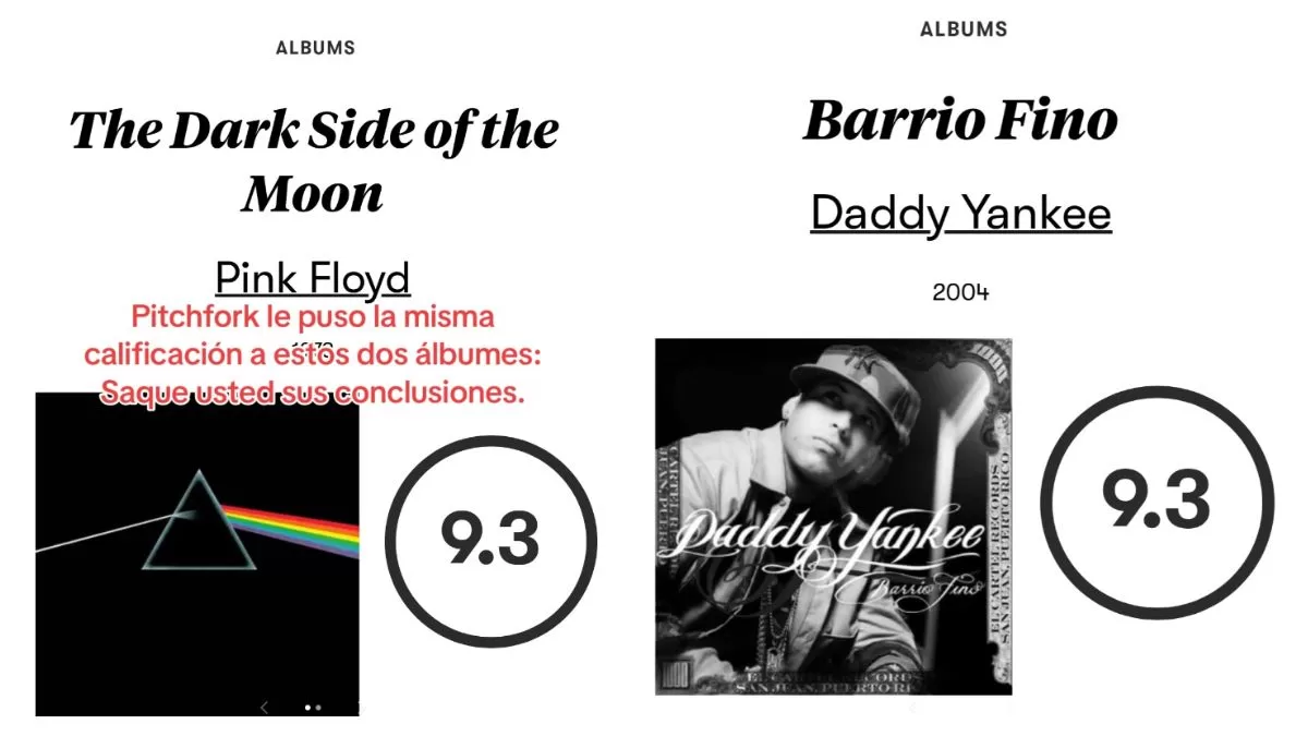 ¿Los opuestos se atraen? Pitchfork da la misma calificación que The Dark Side of the Moon a otro famoso álbum de reggaeton