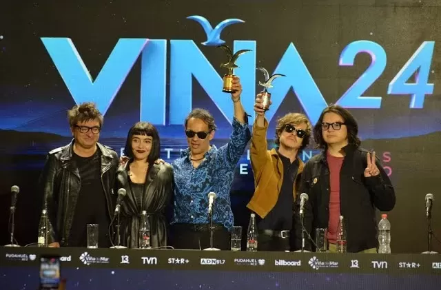 Los Bunkers en conferencia de prensa posterior a su presentación en Viña 2024. Fuente: La opinión.