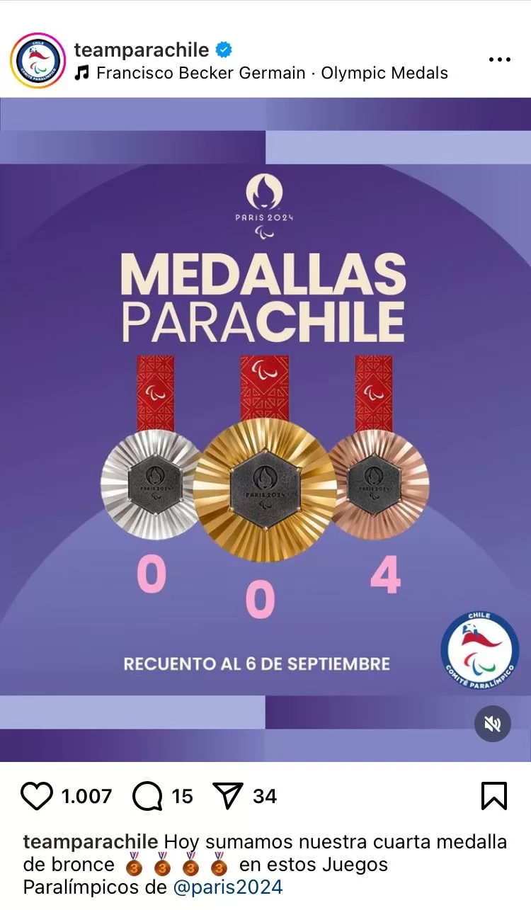De acuerdo con lo informado por Radio ADN, tras la exitosa participación de Florencia Pérez, el medallero del Team ParaChile en los Juegos Paralímpicos París 2024 quedó con cuatro bronces: una de Pérez y tres de Alberto Abarza.