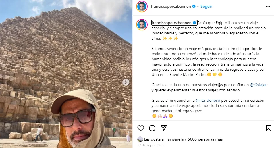 Actualmente, Francisco Pérez Bannen está alejado de las teleseries, pues utiliza su energía y tiempo en terapias, nutrición y viajes. Para él, los viajes deben ser con sentido y transformadores, es por eso que creó su propia agencia. A la vez, desarrolló suplementos que a partir de materias primas, logran cubrir el aspecto físico, que según explica, muchas veces está desbalanceado.