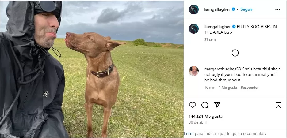 Liam Gallagher se refirió a este conocimiento: "Gracias por el premio. Rescatar a Buttons ha sido la mejor decisión que hemos tomado. Ella trae tanta felicidad a nuestras vidas y a todas las personas que conoce. Recomiendo encarecidamente adoptar un perro sin hogar", declaró.